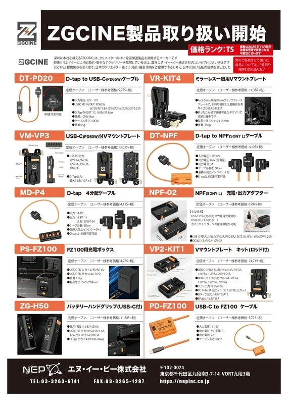 エヌ・イー・ピー株式会社が日本代理店をしているZGCINE商品の一部をご紹介